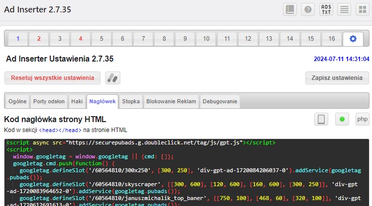 Zaszczyt emisji reklam zawdzięczamy wtyczce Ad Insterter.